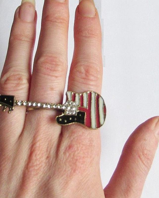 🏵Стильное кольцо на два пальца в виде гитары в сиреневую полоску в стразах станет потрясающим дополнением Вашего образа!