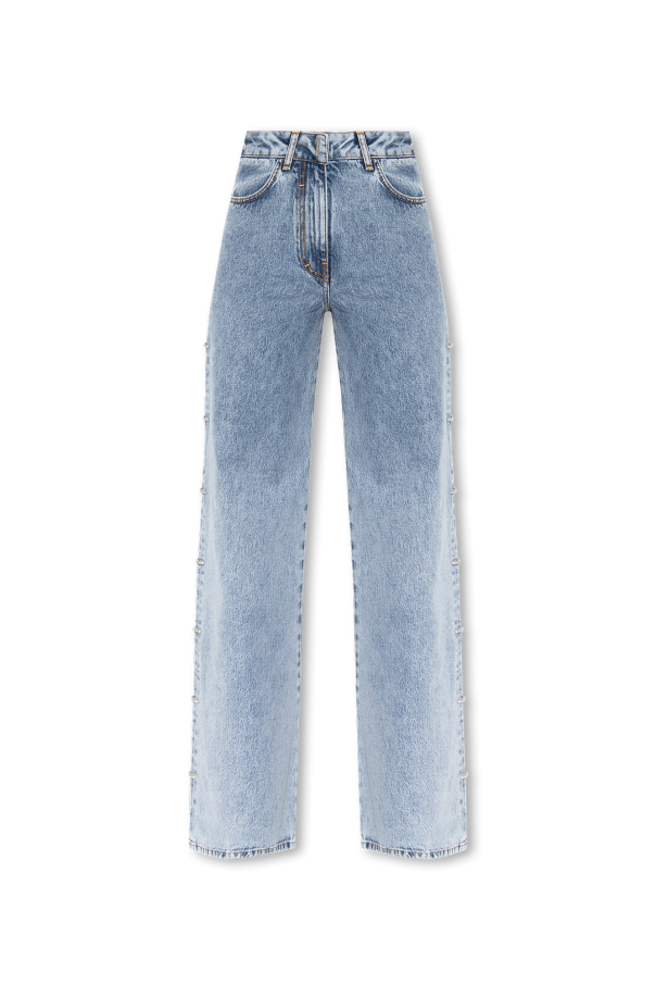 Blue jeans from Givenchy. Fastened with a zip, hook and button, this high-waisted pair features two front and back pockets, silver-tone detail embellished with crystals and wide, straight legs.