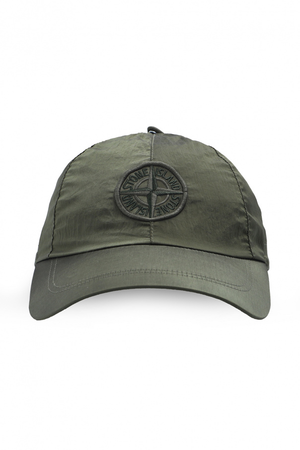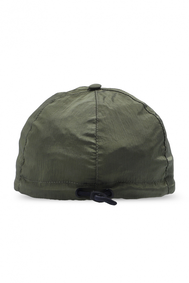 Green baseball cap from Stone Island. Crafted from glistening material, this item showcases logo embroidery on the front and a drawstring adjuster at the back.