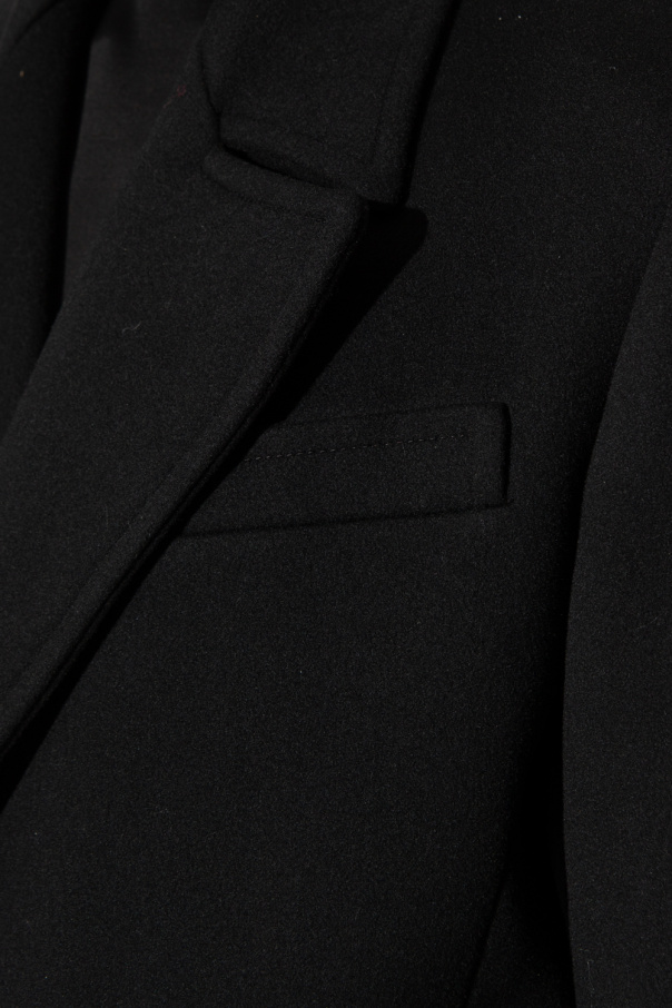 Black coat from Saint Laurent. Crafted from cashmere, this style features a double-breasted silhouette, button fastenings, a collar with lapels, three frontal pockets and long sleeves with button cuffs.