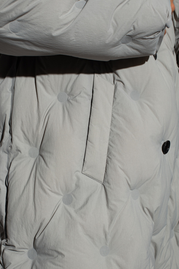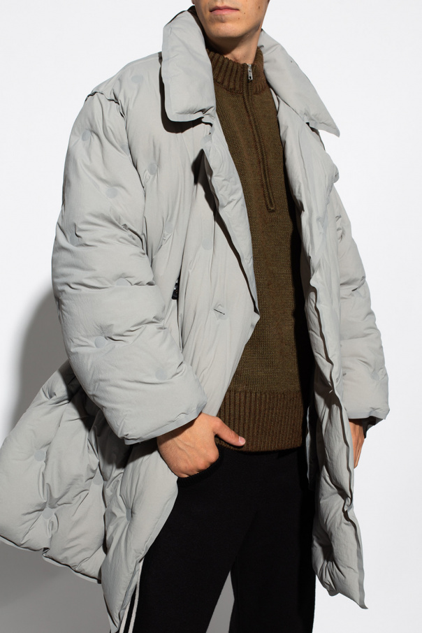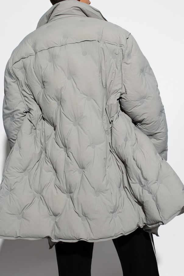 Grey double-breasted quilted coat from Maison Margiela. Fastened with buttons, this oversize design has long sleeves and two front pockets.
