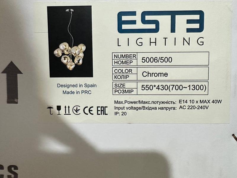 Продам люстру, нову, не виймалась з коробки. Колір - chrome. Кіл-ть плафонів 10