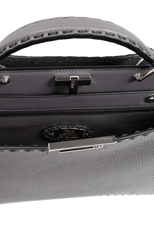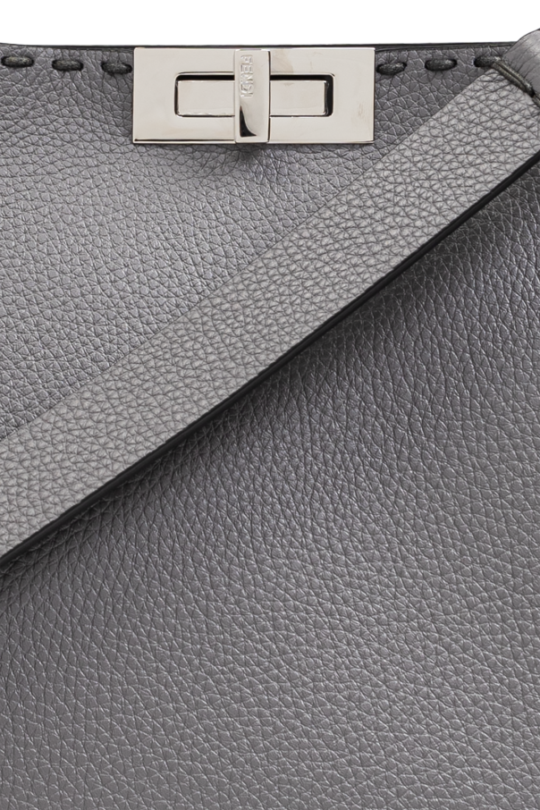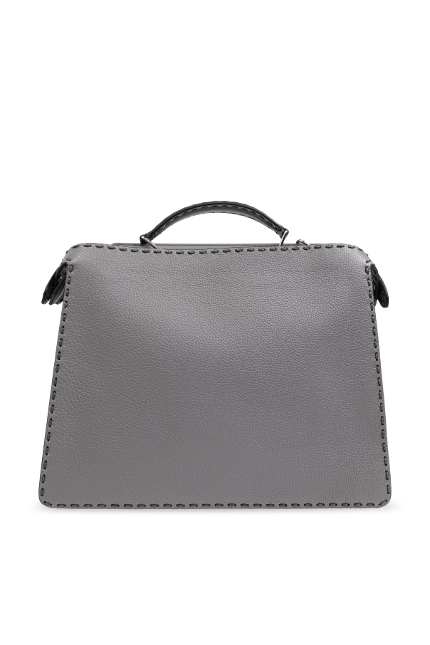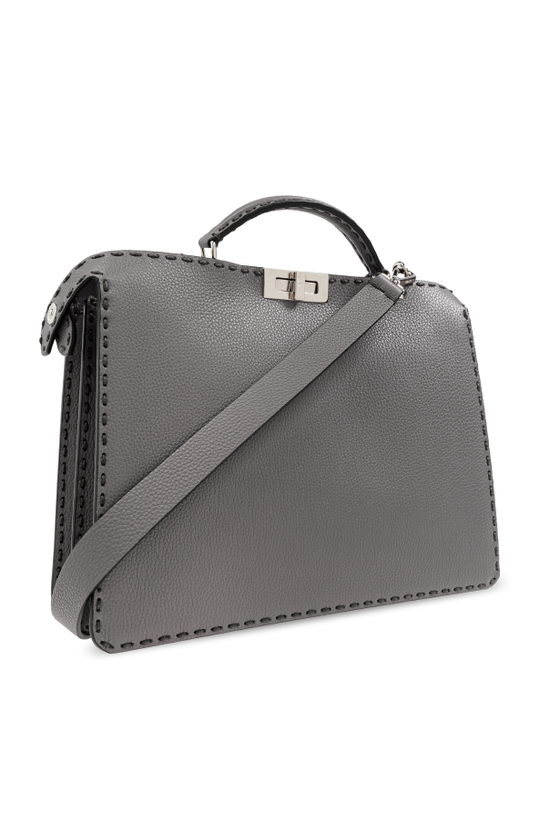 Introducing the Medium Peekaboo Shopper Bag by Fendi, an embodiment of timeless elegance and superior craftsmanship. This distinguished accessory, designed for the discerning gentleman, is meticulously crafted from high-quality grainy leather in an exquisite shade of gray. The bag features a refined rectangular silhouette with subtly rounded edges, ensuring a sophisticated and professional appearance. Its rigid structure further enhances its elegant demeanor, making it a versatile addition to any wardrobe. Exquisite details adorn this masterpiece: a sturdy handle for hand-carrying, a long adjustable shoulder strap, and a signature metal turn-lock closure engraved with the iconic Fendi logo. The interior is thoughtfully designed with two compartments and three pockets, providing ample space for organization. The finishing touch is the visible edge stitching, adding a unique character to this luxurious piece. Polished silver-tone hardware beautifully contrasts with the gray leather, amplifying the overall allure of the bag. This product seamlessly merges functionality with elegant design, making it a quintessential choice for men who value both style and quality. Why Choose This Product? High-quality grainy leather for durability and elegance Structured design for a professional and sophisticated look Ample storage with two compartments and three pockets Adjustable shoulder strap for versatile carrying options Iconic Fendi logo and polished silver-tone hardware