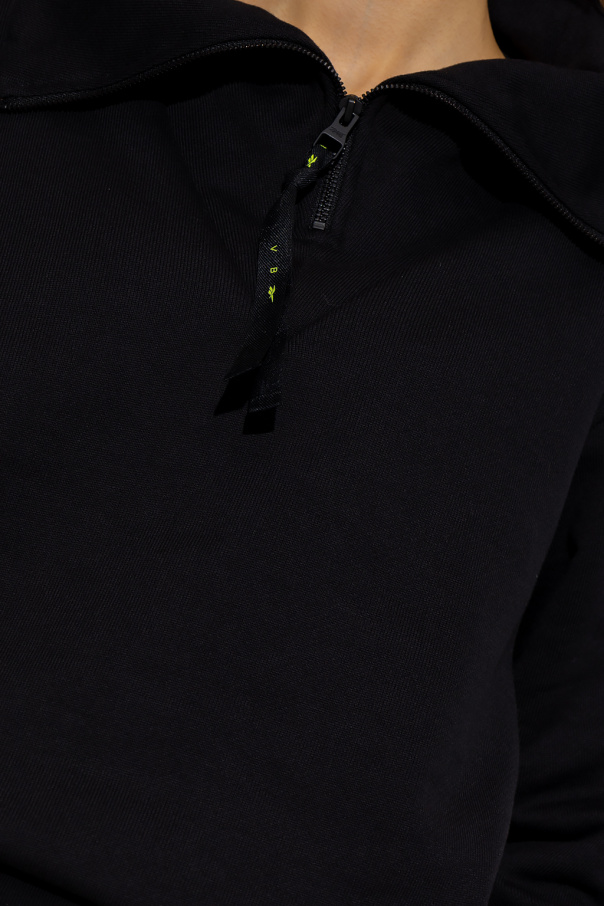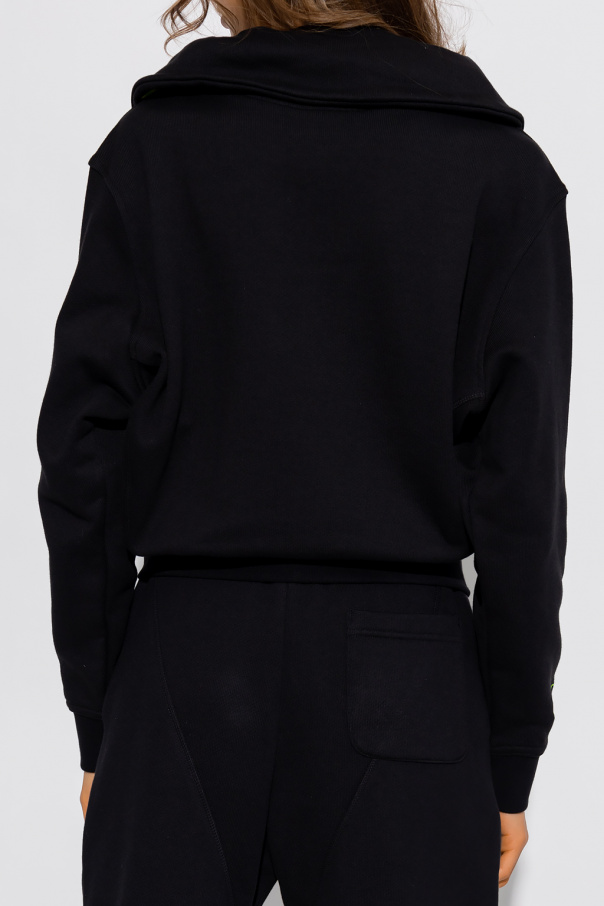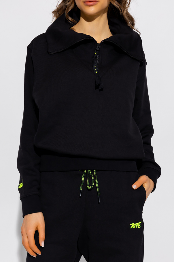 Black loose-fitting sweatshirt from Reebok x Victoria Beckham. Made of cotton, this garment features a high neck with zip closure, neon green logo embroidery and ribbed trims at the hem and cuffs.