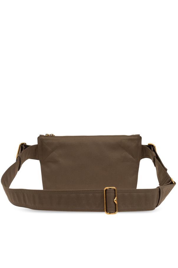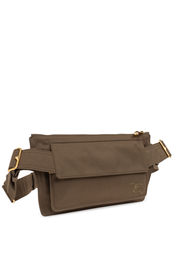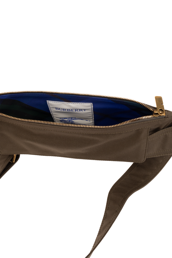 Introducing the quintessence of sophistication and utility: the 'Trench' Waist Bag by Burberry. Crafted with an astute eye for detail, this exclusive piece embodies the essence of refined durability. Its canvas, woven with a dense and resilient thread, is presented in a sumptuous dark green hue, versatile enough to appear as olive or brown under different lighting conditions. The bag's rectangular silhouette, marked by clean, straight lines, opens to reveal a capacious main compartment, elegantly lined in a contrasting navy fabric and secured with a dual-pull zipper. Inside, a discreetly placed designer label signifies its esteemed origin. The front pocket, embossed with the subtle logo of its creator, enhances its functionality with additional zippered pockets for your essentials. Accentuated by golden metallic details that gracefully contrast the matte finish of the fabric, the wide, adjustable strap ensures comfort and style. These metal accents not only adorn the zippers but also serve as refined points of attachment, underscoring the meticulous craftsmanship. Why Purchase This Product? Exemplifies sophistication with its elegant design and color palette. Ensures durability and functionality, crafted from a high-quality, densely woven canvas. Features meticulous craftsmanship, highlighted by the subtle branding and metal accents in aged gold. Provides versatile storage solutions, including a spacious main compartment and secure zippered pockets.