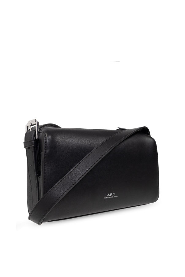 Black ‘Nino’ shoulder bag from A.P.C. Crafted from faux leather, this design secures with a zip and showcases a printed silver-tone logo on the front. It is complete with a long, adjustable shoulder strap, one back pocket with a magnetic snap, silver-tone metal hardware and one internal compartment with a slip pocket.