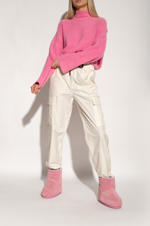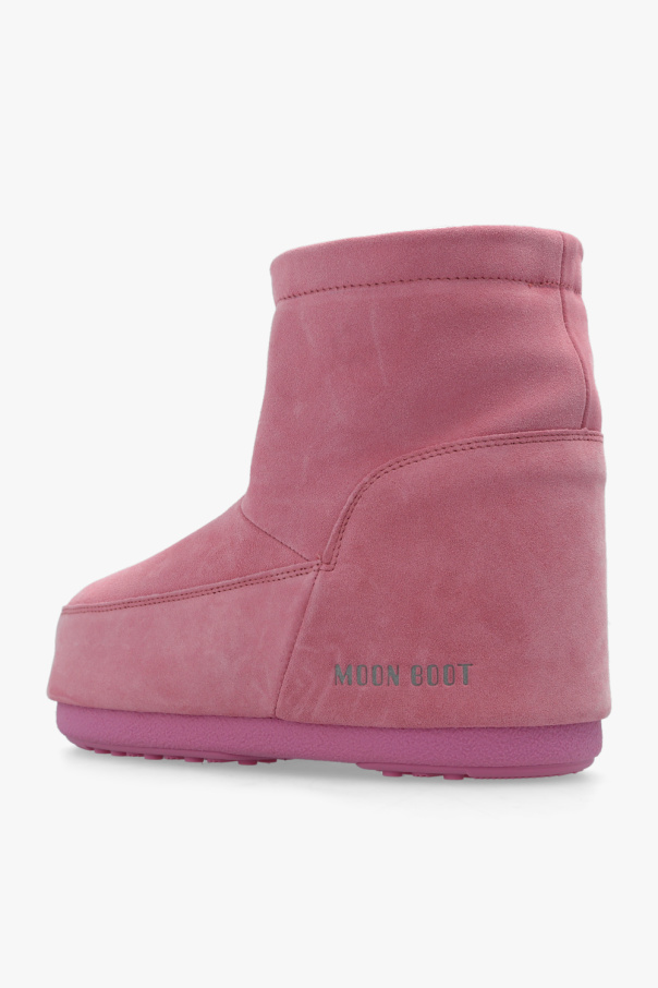 Pink ‘Icon Low’ insulated snow boots from Moon Boot. Crafted from suede, this model showcases an embossed logo, a lightweight midsole and suction pads on the rubber tread sole that offer serious ground control. Inspired by the footwear worn by astronauts during the 1969 lunar landing, this project combines technical features with a contemporary look.