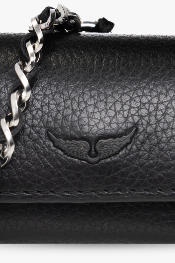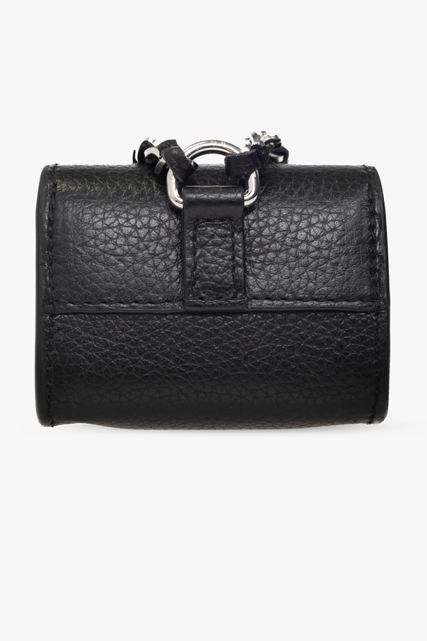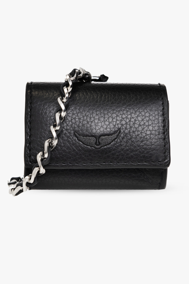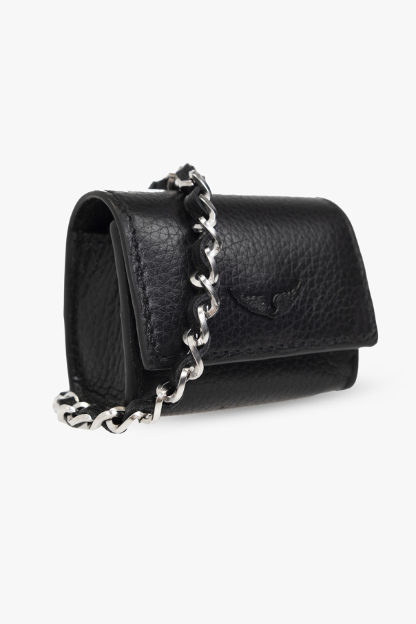 Black AirPods Pro case from Zadig & Voltaire. Made of leather, this item fastens with a snap and features a logo application, a chain neck strap and silver-tone metal hardware.