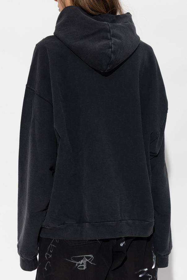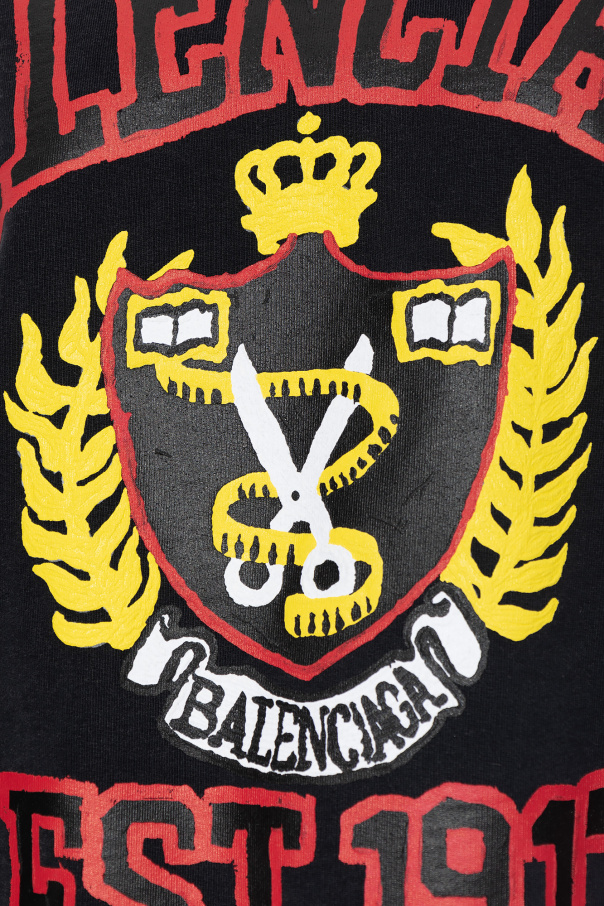 Black hoodie from Balenciaga. Crafted from cotton with an oversize fit and vintage effect, this style showcases colourful graphic prints, logo detailing and ribbing on the bottom hem and cuffs.
