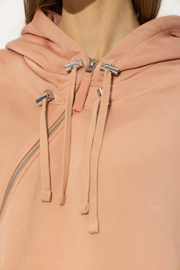 Beige and pink ‘F-BANAZIP’ hoodie from Diesel. Crafted from cotton jersey, this style features logo embroidery, a zip fastening, long sleeves, a drawcord-adjustable hood and hem and decorative trimming at the bottom.