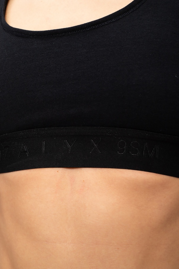 Black sports top from 1017 ALYX 9SM. Crafted from a cotton blend, this garment is decorated with an elastic tape embroidered with a logo.
