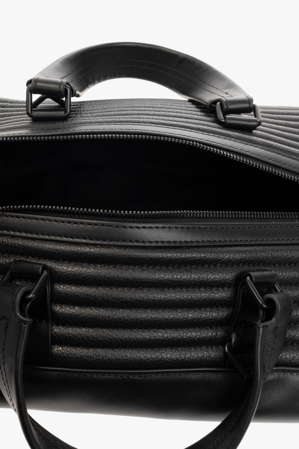Black ‘ODD’ shoulder bag from Diesel. Made of cow leather, this model is complete with a zip fastening, decorative quilting, two half-round handles, two detachable shoulder straps, black metal hardware and two separate internal compartments with one zip pocket.