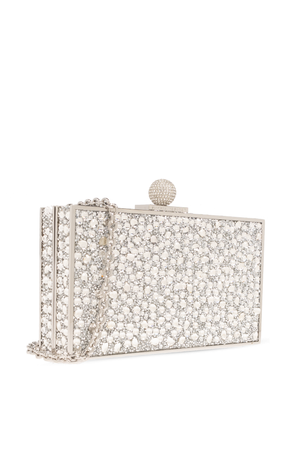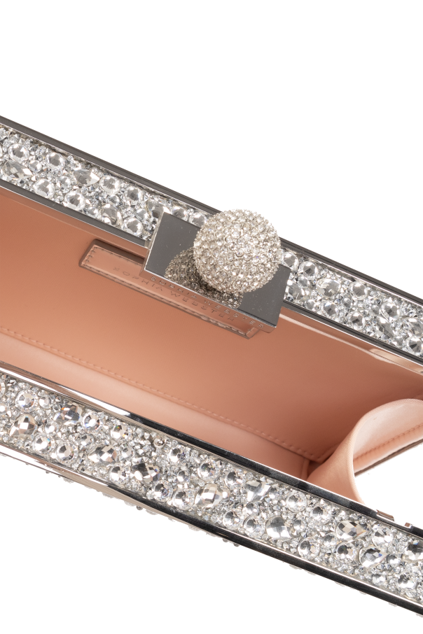 The 'Clara' clutch by Sophia Webster is a quintessence of evening elegance, meticulously crafted to enhance your formal attire. This rectangular-shaped accessory boasts a solid, structured profile, complemented by a flat base that ensures stability when placed down. Enveloped in a shimmering fabric, adorned with countless fine crystals, the 'Clara' clutch radiates a captivating silver hue, making it an exquisite addition to any evening wardrobe. The allure of this clutch is further accentuated by its decorative, round clasp closure, likely encrusted with delicate crystals, adding a touch of opulence. The edges are meticulously finished with a metallic or similar material trim, elegantly outlining its contours. The 'Clara' clutch also features a delicate, detachable shoulder chain, offering versatility in wear, from a sophisticated handheld to a graceful shoulder accessory. Inside, the clutch reveals a lining of smooth leather or leather-like material in a light or beige tone, creating a striking contrast with its gleaming exterior. Though devoid of any visible brand markings or logos, the craftsmanship and attention to detail speak volumes of its designer, Sophia Webster. Why Choose the 'Clara' Clutch? Exquisite Craftsmanship: Adorned with sparkling crystals and a sophisticated clasp, each detail is a testament to impeccable design. Versatility: Comes with a detachable shoulder chain for multiple styling options. Elegance: Its silver color and gleaming details make it the perfect accessory for evening events. Quality Materials: Made from leather, premium fabric, and crystals, ensuring both luxury and durability.