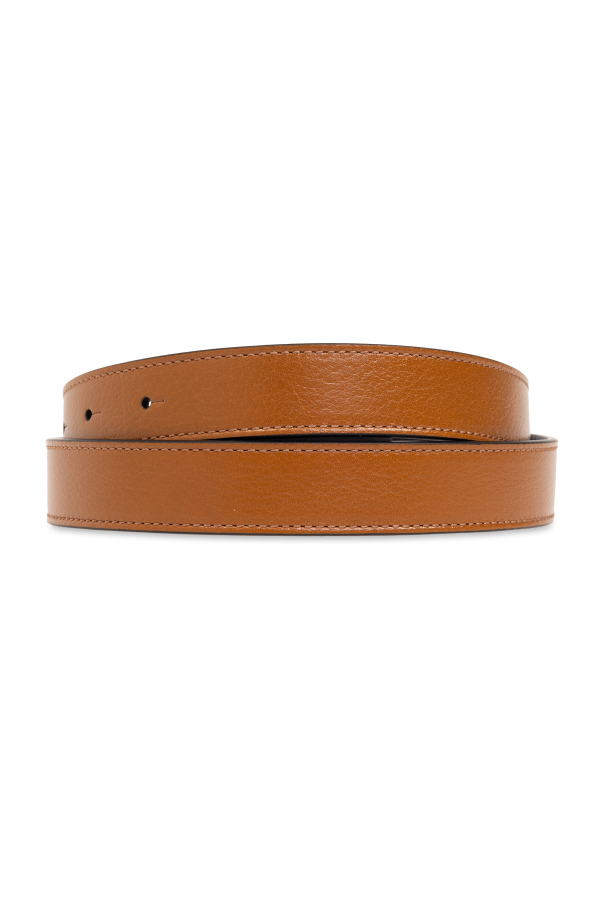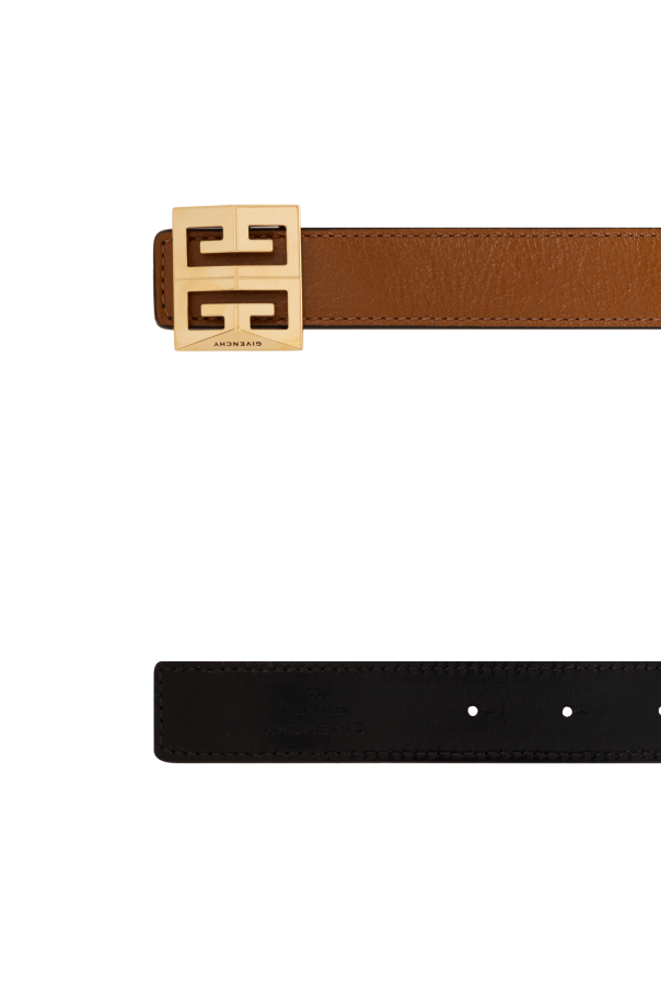 Introducing the Givenchy Reversible Leather Belt, a paragon of luxury and versatility. Crafted from the finest buffalo leather, this exquisite accessory boasts a rich, textured appearance that speaks volumes of its high-quality craftsmanship. The belt's dominant brown hue exudes a classic elegance, while its reversible feature adds a layer of practicality, offering a black alternative for diverse styling options. The belt's distinctive geometric-shaped, gold-toned buckle not only secures the piece with sophistication but serves as a hallmark of the Givenchy brand's renowned attention to detail. Whether cinched around the waist of a tailored pant for a polished ensemble or paired with casual wear for a refined touch, this belt perfectly contours to the silhouette, enhancing any outfit with grace and style. Upon closer inspection, the belt's meticulously designed texture and color are even more apparent, further emphasizing its premium quality and the luxurious experience it offers. Why Purchase This Product? Reversible Design: Offers two color options (brown and black), increasing its versatility and pairing possibilities. Luxurious Material: Made from 100% buffalo leather, ensuring durability and a rich texture. Iconic Buckle: Features a gold-toned, geometric-shaped buckle that adds a touch of elegance and serves as a distinctive brand emblem. Givenchy Craftsmanship: A testament to Givenchy's legacy of luxury and meticulous attention to detail.
