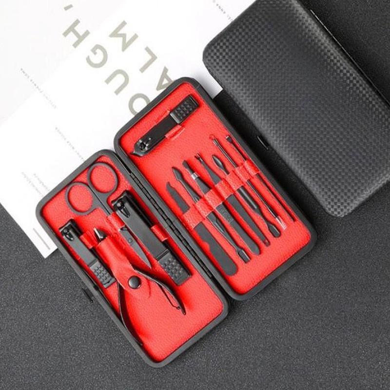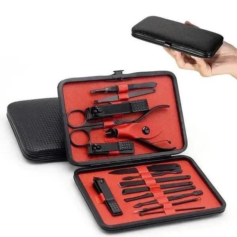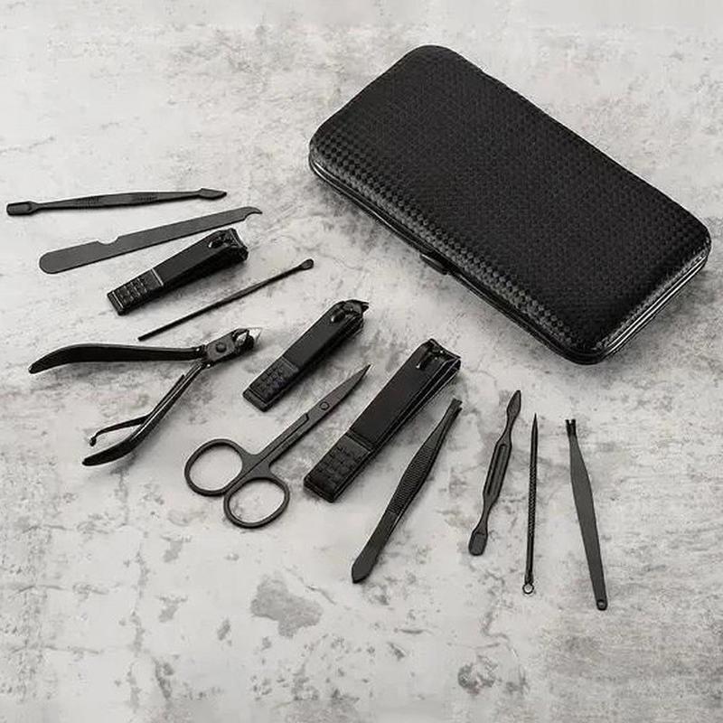 медицинской сталиПрактичный маникюрный набор в стильном футляре черного цвета Футляр надежно