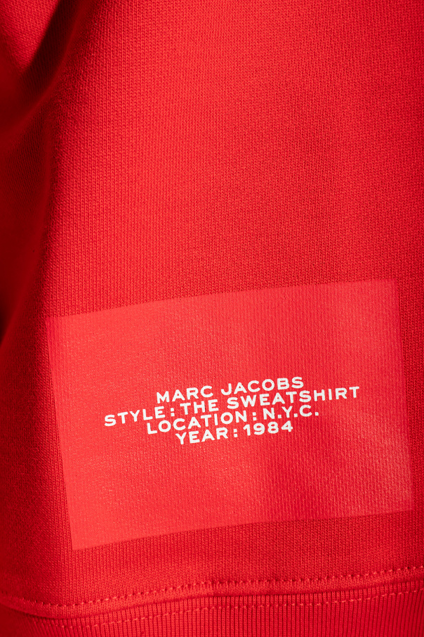 Red crewneck sweatshirt from Marc Jacobs. Made of cotton, this long sleeve design features an embroidered and printed logo, white monogram print and ribbed edges.