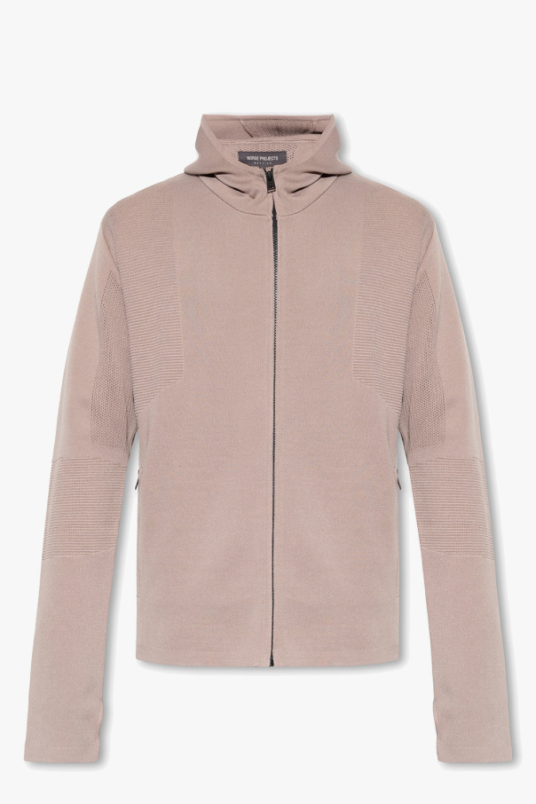 Greyish beige hoodie from Norse Projects, the ‘ARKTISK’ collection. Crafted from the PRIMALOFT®PERFORMANCE YARN wool blend, this garment features zip fastening, two zip pockets and ribbed hem.