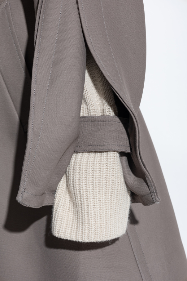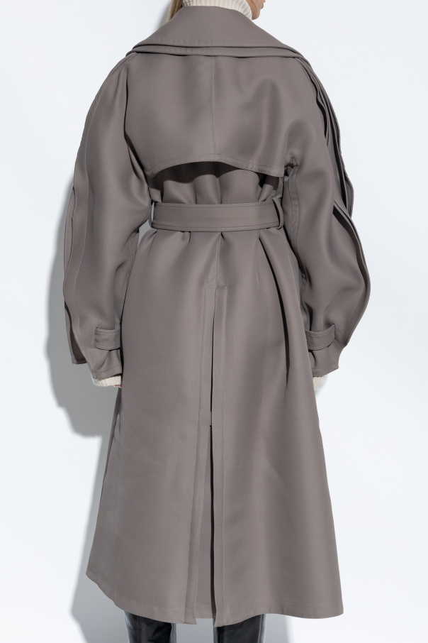 Discover the epitome of sophistication with the Alaïa Wool-Trimmed Coat, a masterpiece of timeless elegance. This sumptuous, gray coat, accented with a brownish hue, descends gracefully to mid-calf, featuring a classic cut with a subtle flare. Designed by the renowned Alaïa, known for exquisite craftsmanship, this piece is a testament to luxurious fashion. The coat boasts a wide collar and lapels, enhancing its refined aesthetic, and is cinched at the waist with a wide, matching fabric belt that fastens elegantly with a buckle. Crafted from a blend of wool, viscose, and silk, this coat promises warmth and a plush texture, with woolen detailing on the cuffs adding a touch of contrast and texture. Large, prominent pockets adorn the front, marrying functionality with style. Why Choose This Product? Designed by the esteemed Alaïa, a hallmark of luxury and precision. Perfect for both formal occasions and chic, everyday ensembles. Universal gray hue for versatile styling options. Exquisite blend of high-quality materials for comfort and elegance.