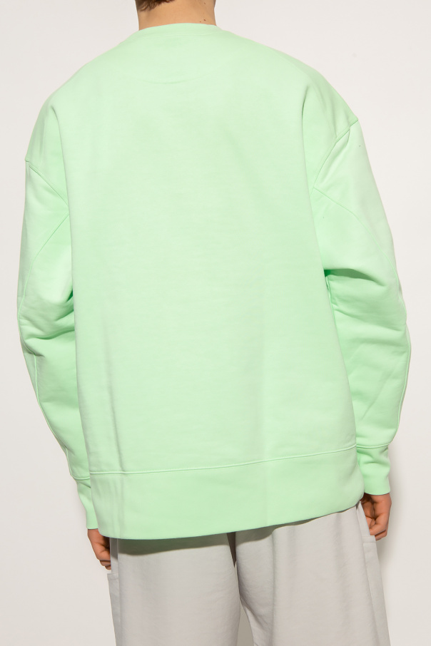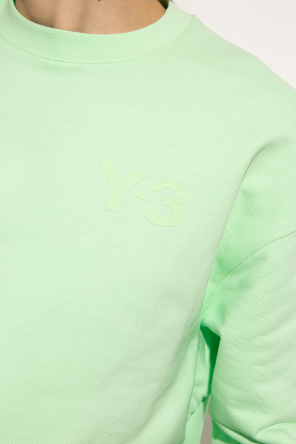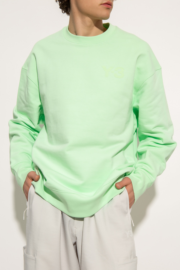 Neon green crewneck sweatshirt from Y-3 Yohji Yamamoto. Crafted from cotton jersey, this style features a graphic pattern with the brand's logo and ribbed trims on the collar, bottom hem and cuffs.