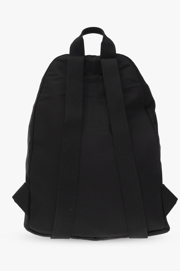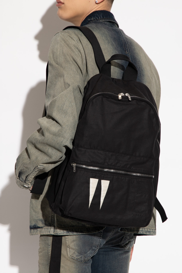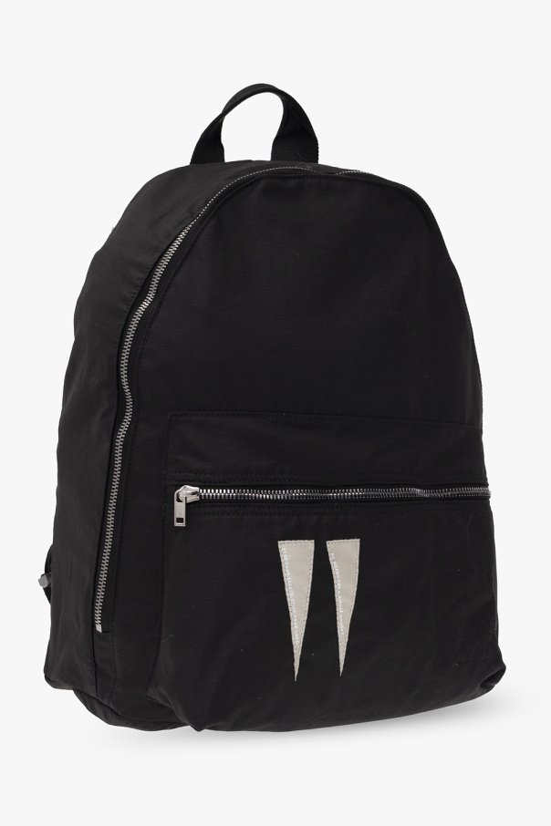 Black backpack from Rick Owens DRKSHDW. Crafted from cotton, this design secures with a two-way zipper and features a zip front pocket accentuated with reflective grey applications, a half-round handle, adjustable shoulder straps, silver-tone metal hardware and one internal compartment with a slip pocket.