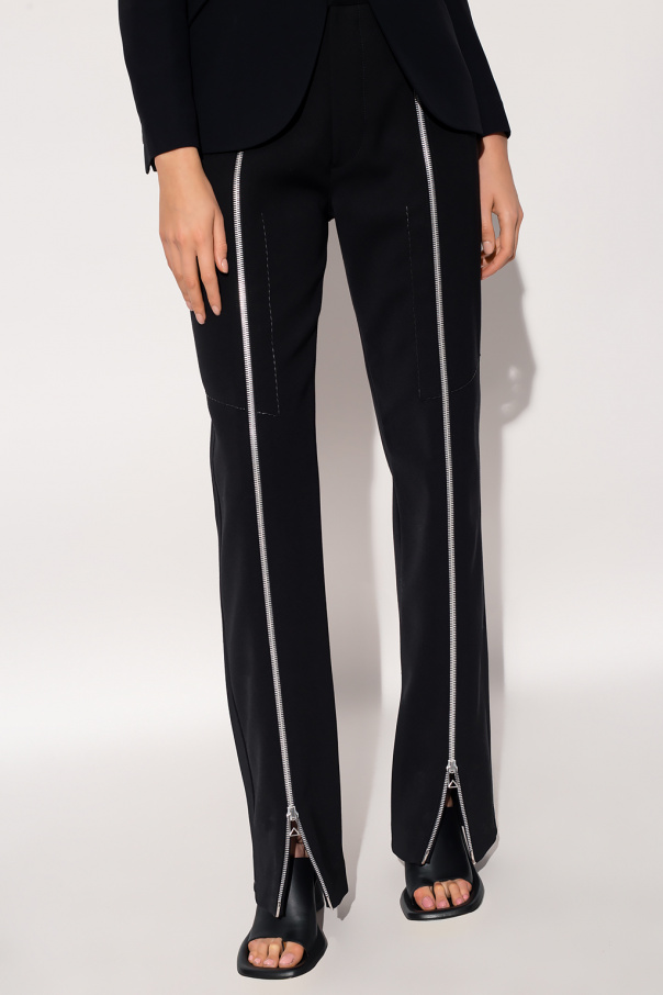 Black trousers from Bottega Veneta. Made of wool, this pair features buttons and snap fastenings, decorative stitching details, straight legs with zips, two front pockets and two back pockets.