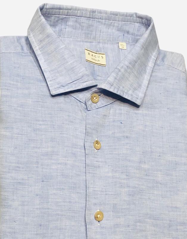 Льняная мужская приталенная рубашка, ворот 44/17,5