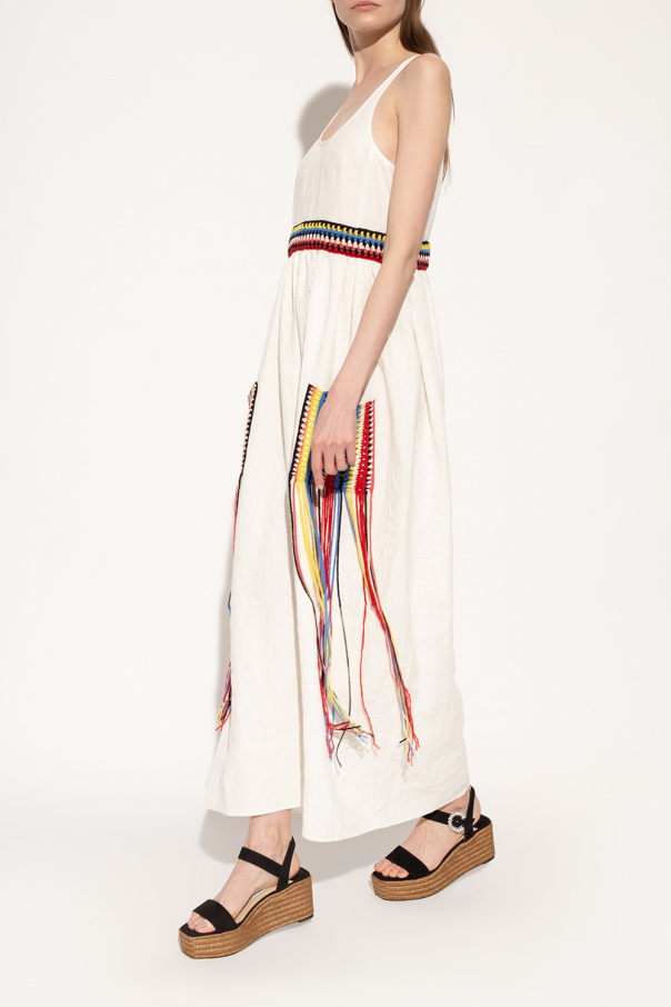 Black and brown ‘Mirabelle’ wedge sandals from Jimmy Choo. Made of suede, this model features a bejewelled buckle strap, a jute-trimmed wedge and a beige and black sole in leather and rubber.