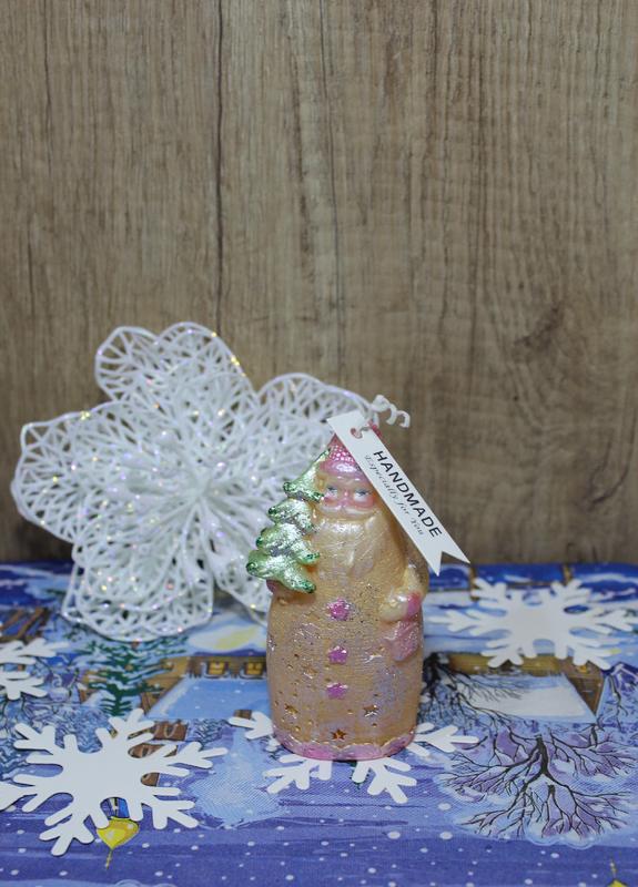 Свеча Дед мороз ручной работы - прекрасный символичный подарок себе, коллегам, знакомым или близким Вам людям. Изготовлена из пищевого парафина высшей степени очистки, марки П-2. С добавлением стеарина, для удлиненного горения. Является экологически чистым продуктом. Высота свечи 10 см, диаметр 5 см, вес 70 грамм.