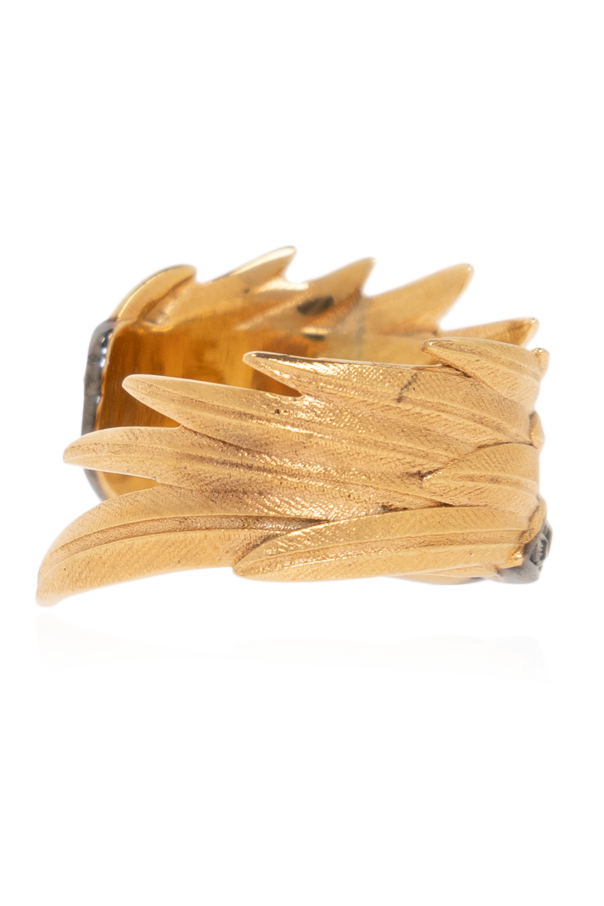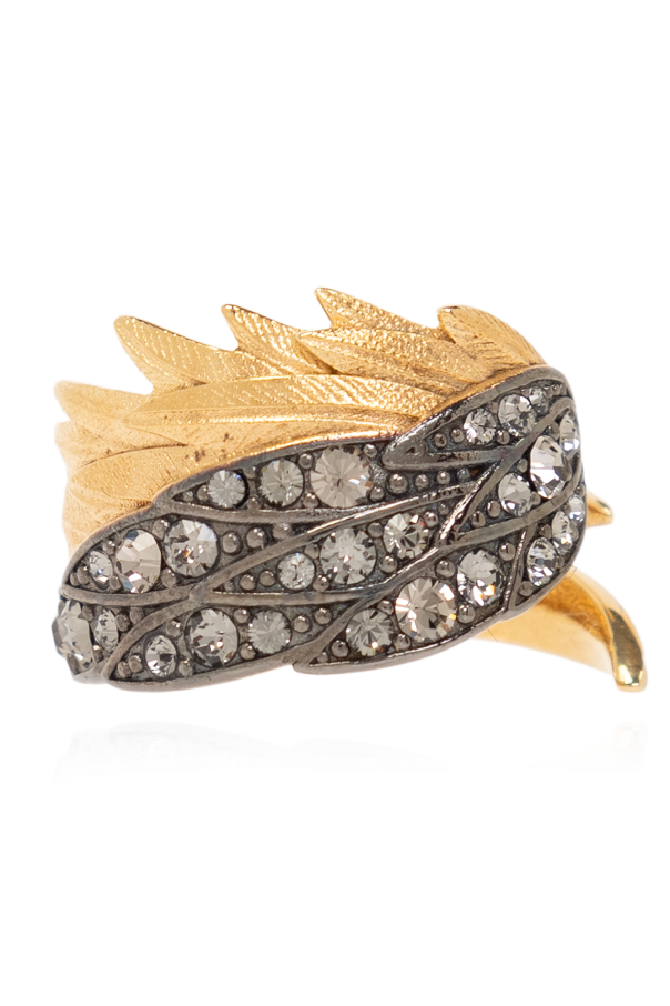 Gold-tone and dark silver-tone ‘Rock’ ring from Zadig & Voltaire. Made of brass, this item showcases a feather motif and glossy crystals.