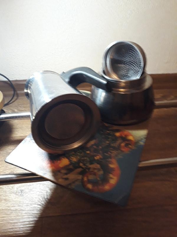 гейзерна кавоварка, нержавійки, включаючи фільтр , вир, термостійка ручка, підходить для електро і газ плит, має незначні сліди використання, обсяг 0,6 л., висота 22,ширина 12/8, замір по колу 41/36/34. роблю додатково фото ,торг.