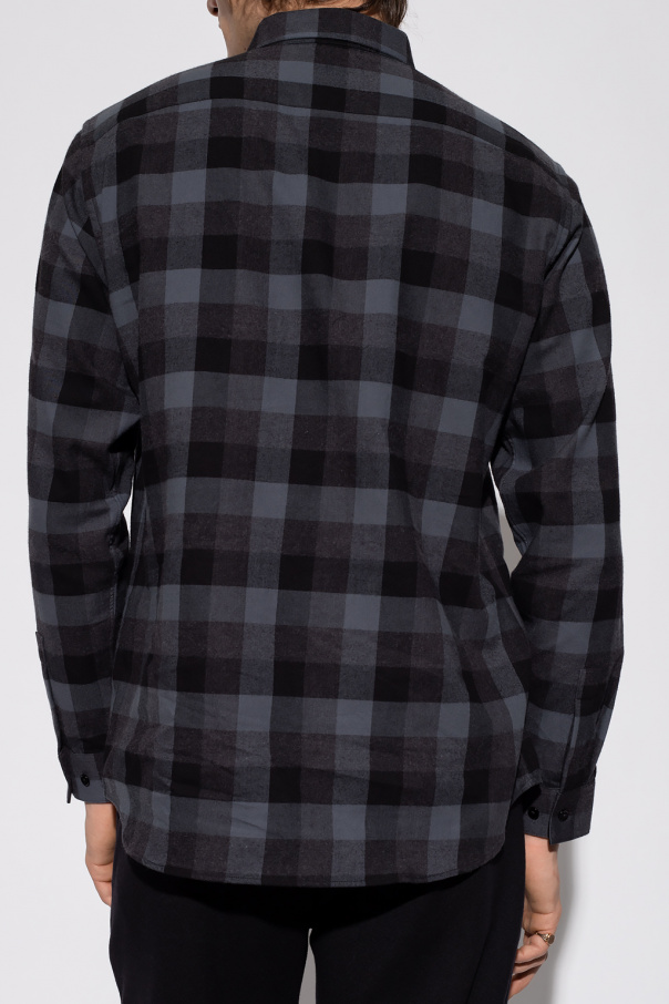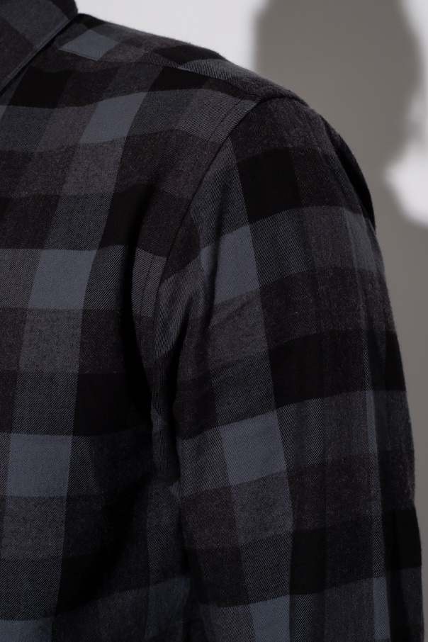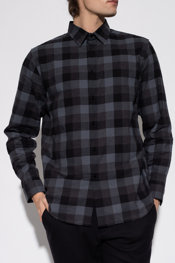 Black, grey and blue shirt from Theory. Made of cotton, this style features an all-over check pattern, button fastenings and long sleeves with button cuffs.