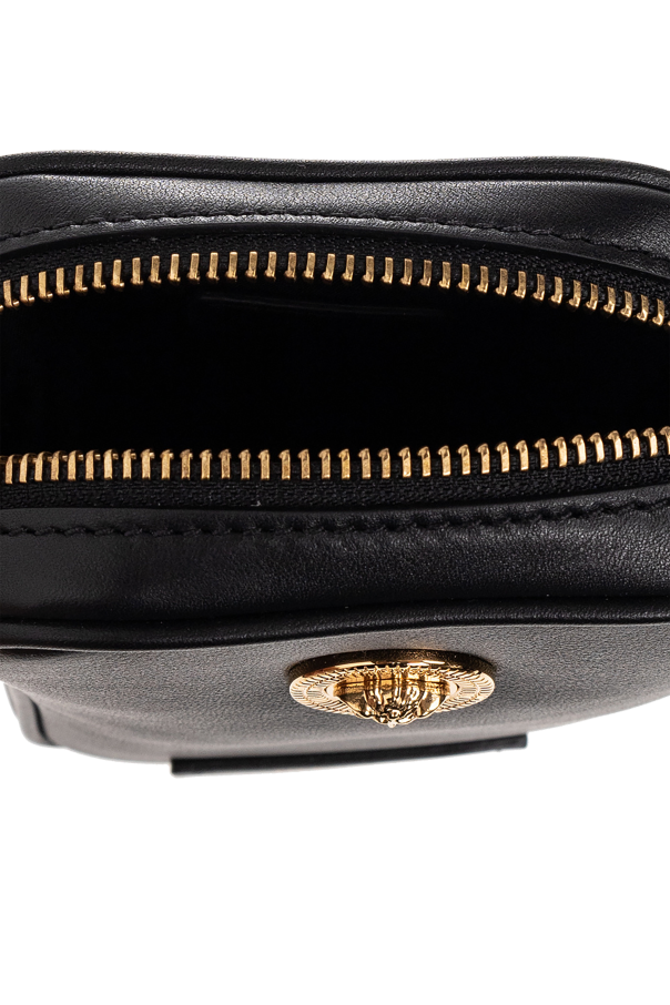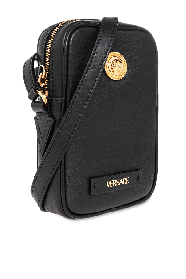 Black ‘Medusa Mini’ shoulder bag from Versace. Crafted from calf leather, this design secures with a zip and showcases a logo patch and the brand's signature Medusa hardware on the front, an adjustable strap and one internal compartment.