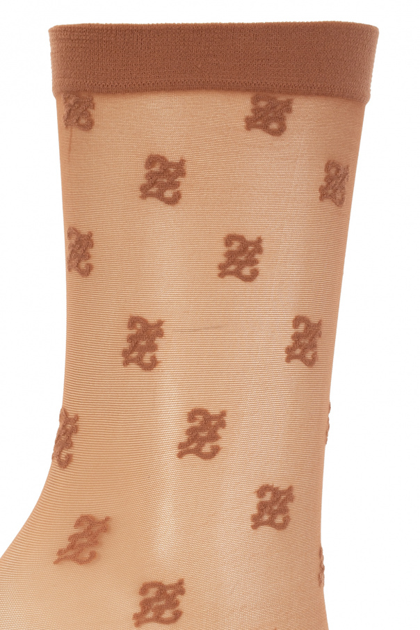 Brown transparent socks with a logo detail and ribbed cuffs from Fendi.