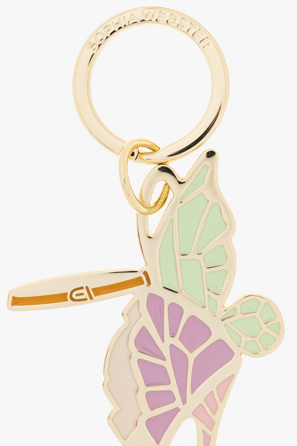 Multicolored keyring with a ‘Chiara’ sandal charm from Sophia Webster. Made of zinc alloy, brass and steel.