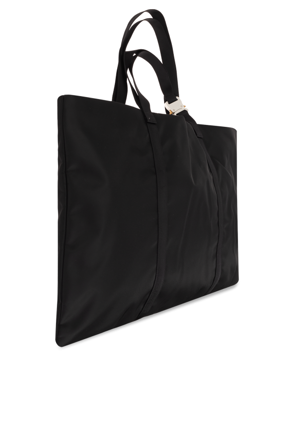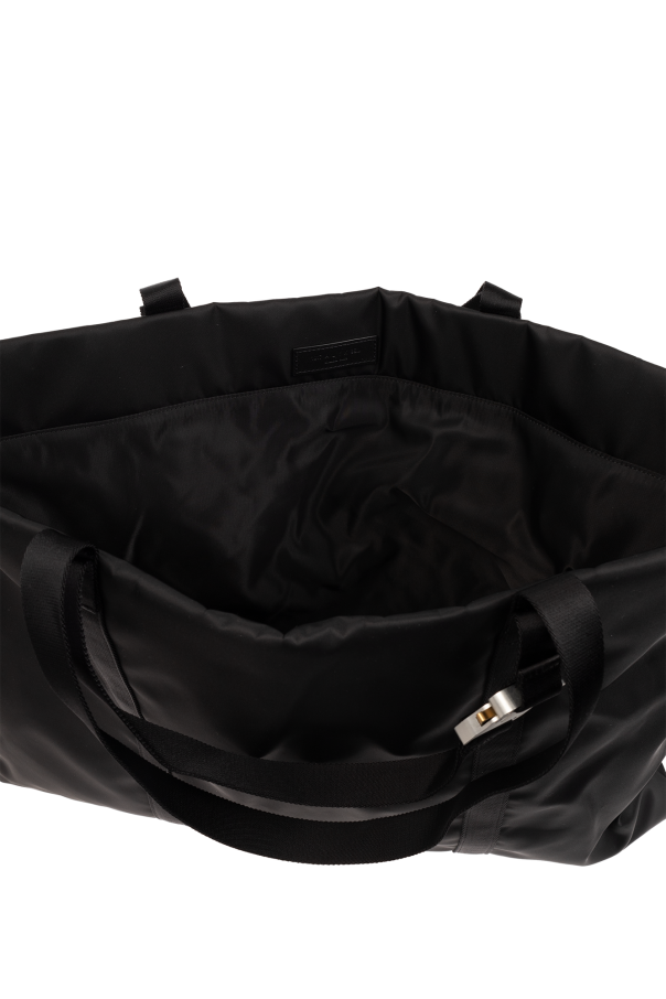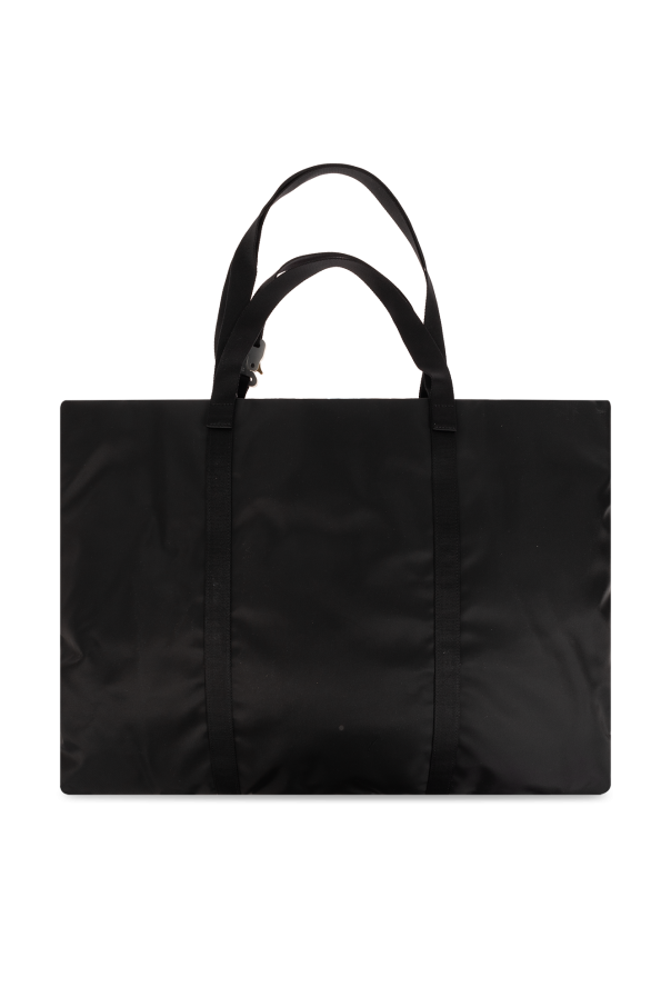 Introducing the quintessence of modern elegance and functionality - the Black 'Shopper' Bag by 1017 ALYX 9SM. Crafted with meticulous attention to detail, this exquisite piece showcases a refined, rectangular silhouette enhanced by vertical seams, dividing its facade into three harmonious sections. The bag's matte texture and uniform black hue epitomize minimalist design, achieving a sophisticated aesthetic that complements any ensemble. Constructed from premium 100% nylon, both inside and out, this shopper bag promises durability and a sumptuous feel. Its long, flat handles, accentuated with a distinctive metal buckle, allow for comfortable shoulder wear, ensuring practicality without compromising on style. The absence of external branding underscores its elegant simplicity, while the metal elements in silver and gold add a touch of luxury. The bag’s spacious interior, devoid of unnecessary compartments save for a small pocket, offers ample room for your essentials, making it an ideal companion for both daily use and special occasions. A closer inspection reveals the exceptional craftsmanship through the quality of material and stitching, attesting to its high-end provenance. Why Purchase This Product? Minimalist Elegance: A timeless design that seamlessly integrates into any wardrobe. Exquisite Craftsmanship: Premium nylon and meticulous stitching reflect superior quality. Versatile Functionality: Spacious interior with a practical pocket for organization. Signature Detail: Unique metal buckle adds a distinctive touch to the design.