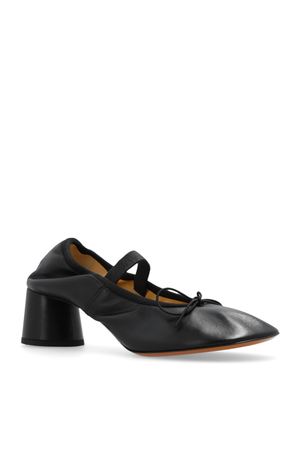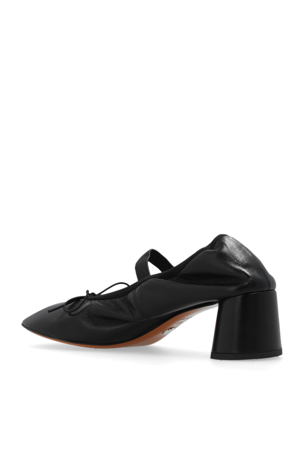 Black ‘Mary Jane’ pumps from Proenza Schouler. Made of smooth lamb leather, this model sits on a brown rubber sole and features an elasticized band and a decorative bow on the front.