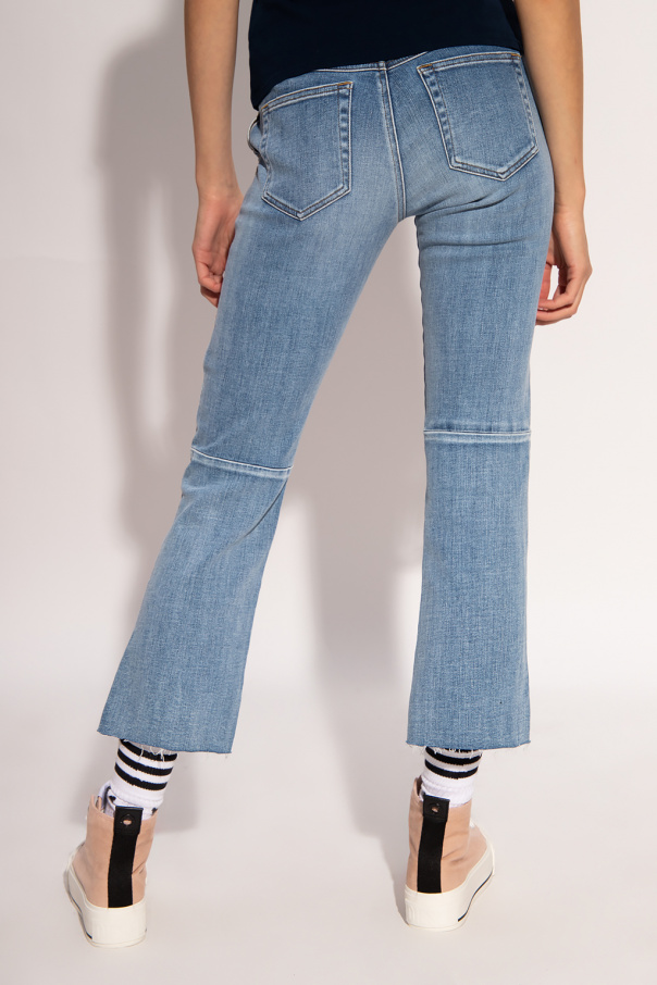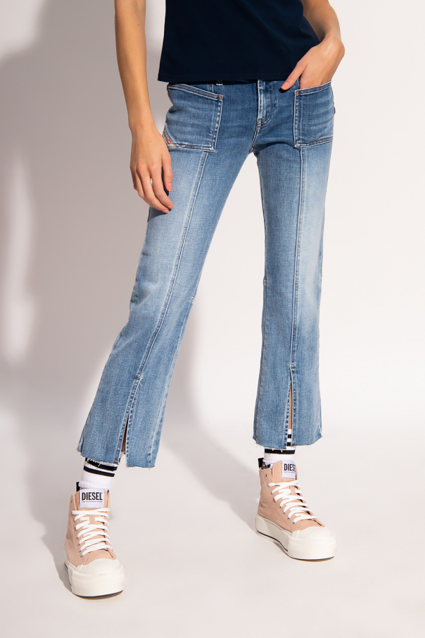 Blue flared jeans from Diesel. Crafted from cotton, this pair features a zip fly with a button, four slip pockets and a beige patch with an embossed logo on the back.