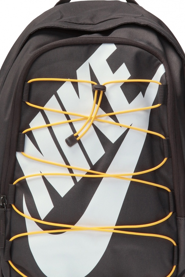 Grey ‘Hayward’ backpack from Nike. Zip fastening. Decorated with a printed logo pattern in white and a yellow element. Zip pocket on the front. Half-round handle. Adjustable shoulder straps. Two compartments and a slip pocket inside.