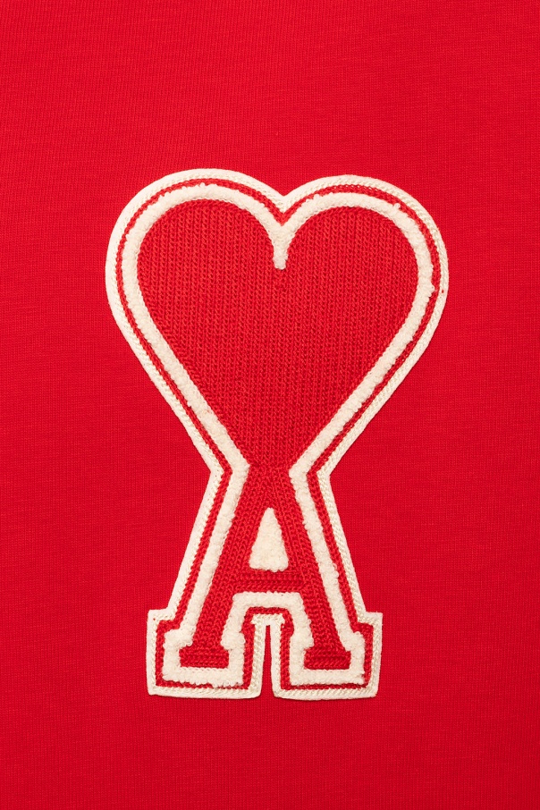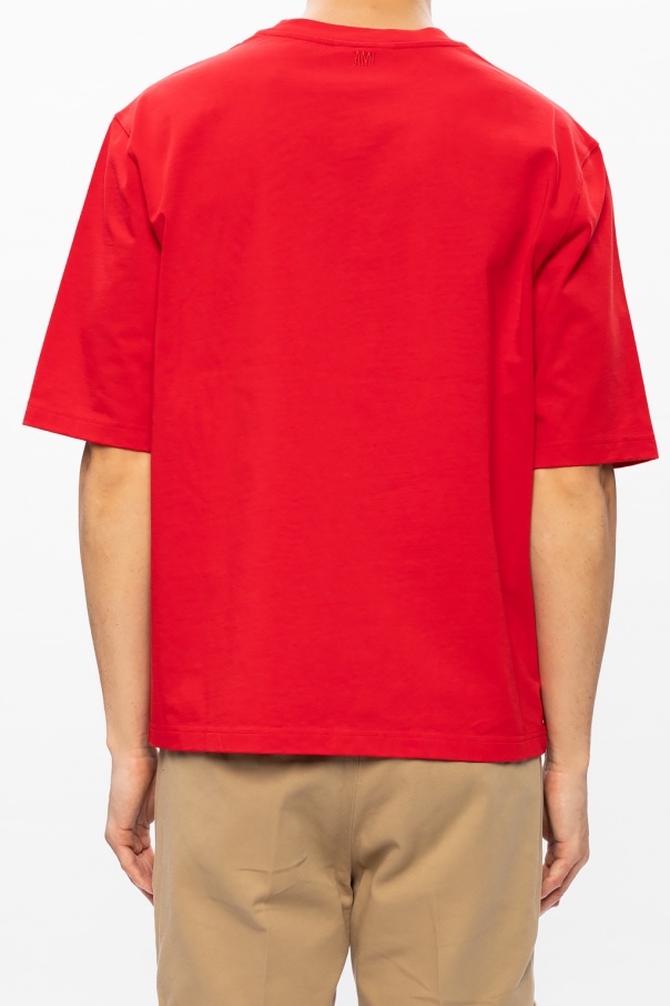 Red T-shirt from Ami Alexandre Mattiussi. Made of cotton. Decorated with a patch featuring a logo in white and red. Round neck.