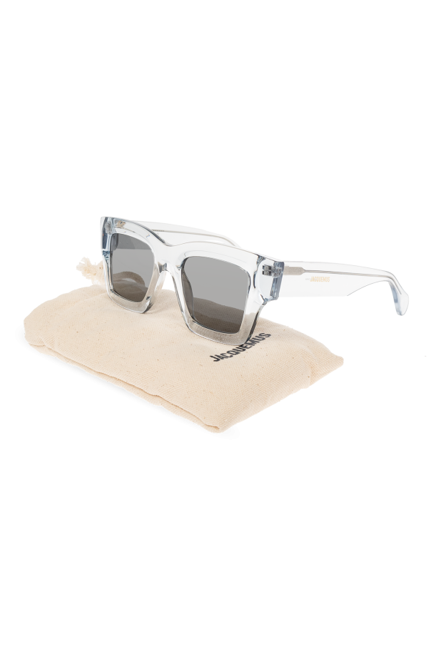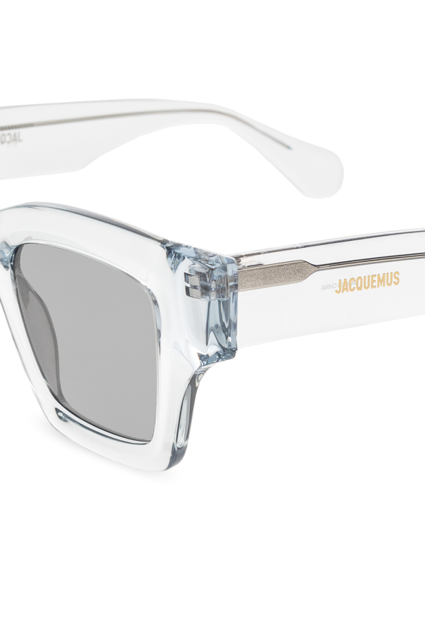Light blue ‘Baci’ square sunglasses from Jacquemus. Made with a translucent finish, this model features gold-tone logo detailing on the temples and grey lenses with UV protection.