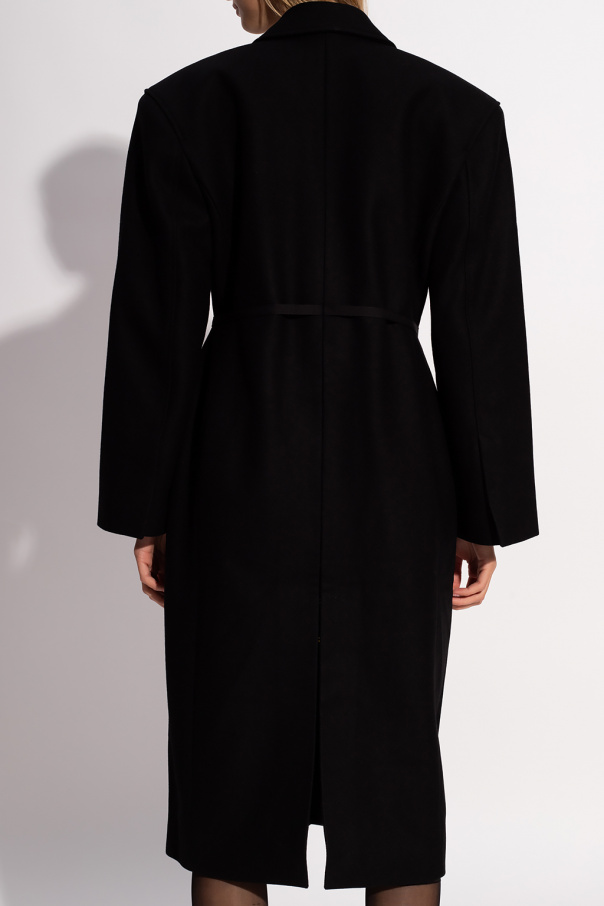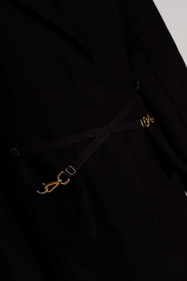 Black coat from Jacquemus. Fastened with buttons, this design features a front pocket, two buttoned flap pockets, decorative clips in gold-tone, slit with hook and eye closure at the back as well as button cuffs.