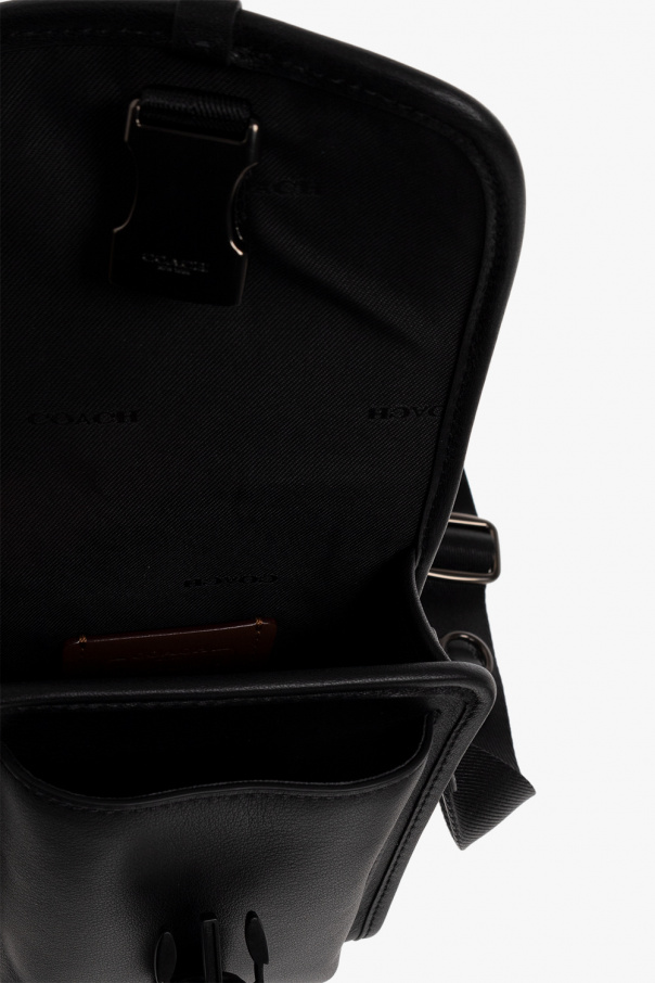 Black ‘Charter’ shoulder bag from Coach. Crafted from calf leather, this model features a flap with a metal buckle, embossed logo at the back, adjustable shoulder straps, silver-tone metal hardware and one internal compartment with one slip pocket. Comes with a detachable zipped pouch with an embossed logo and one slip pocket.