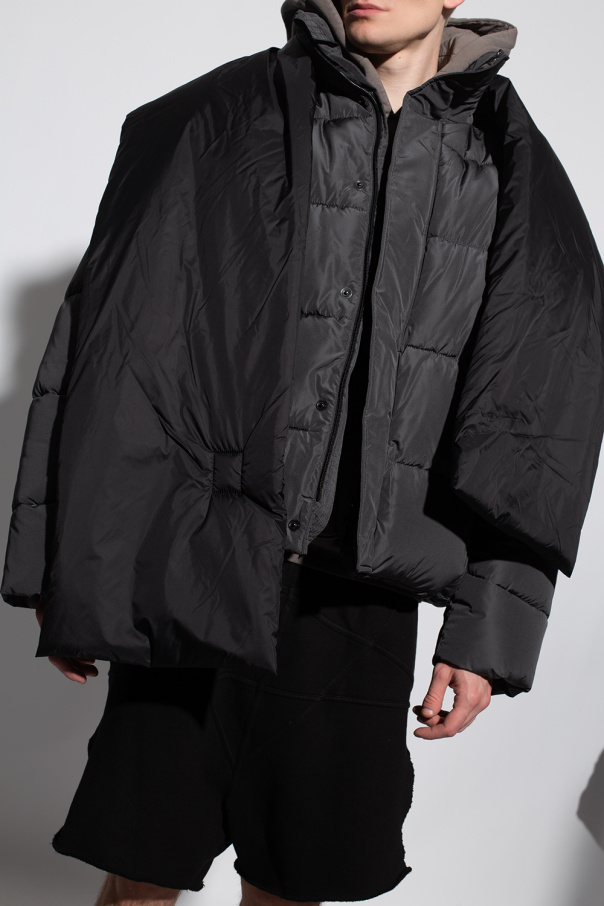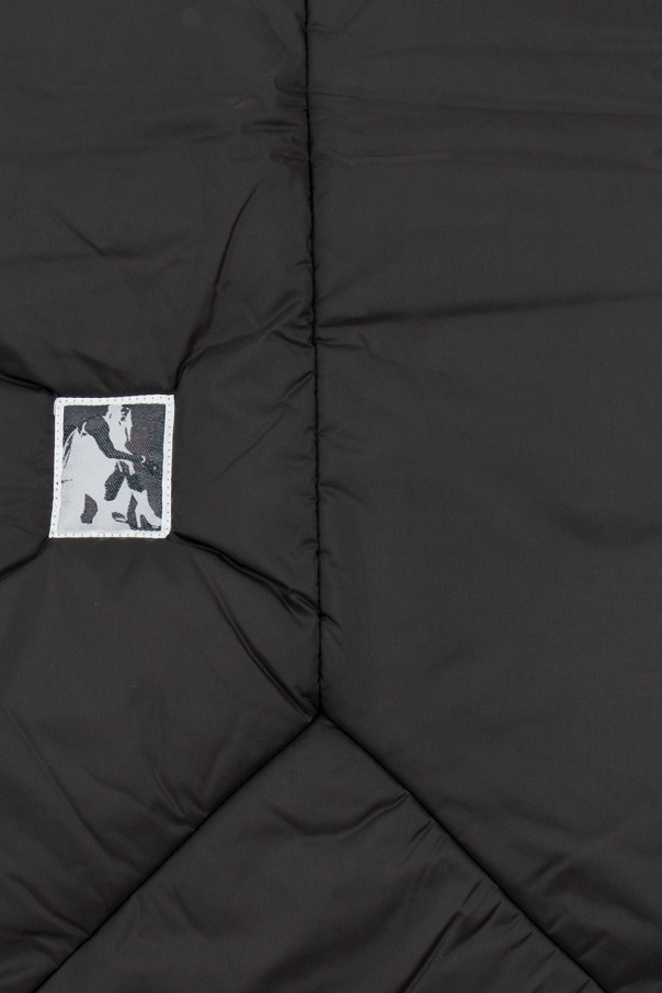 Black scarf from Rick Owens DRKSHDW. Spun from synthetic yarns, this item showcases a black, grey and white patch.