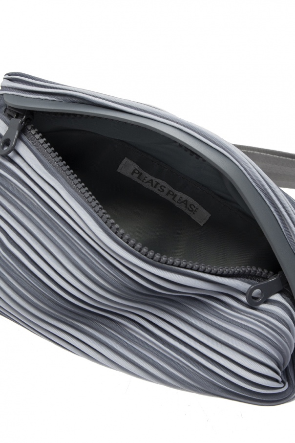Grey belt bag from Issey Miyake Pleats Please. Designed with the label's signature pleating, this item has zip fastening, an adjustable strap and interior with one compartment and one slip pocket.