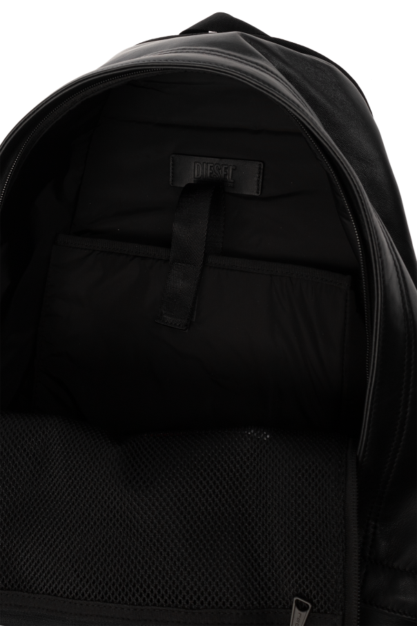 Black ‘RAVE’ backpack from Diesel. Made of sheep leather, this design features a two-way zip, tactile logo, zipped front pocket, two adjustable straps, black metal hardware and one internal compartment with two slip pockets.