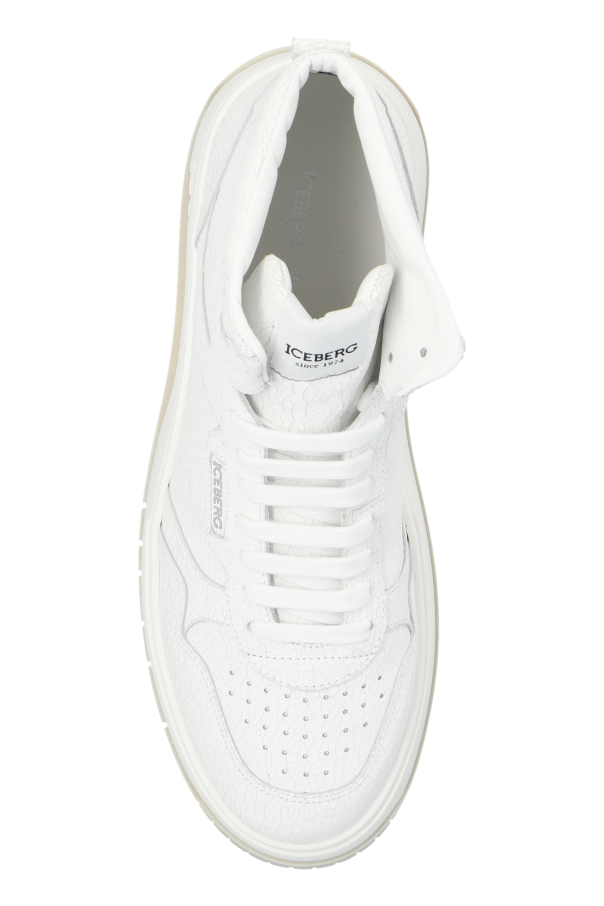 Introducing the exclusive high-top sneakers "Clock" by the renowned brand Iceberg. These luxurious shoes embody a harmonious blend of contemporary athletic style and subtle sophistication, making them a quintessential addition to any discerning wardrobe. Crafted from premium leather, the "Clock" sneakers offer unparalleled durability and comfort. The smooth material, accented with delicate stitching, enhances the overall elegance of these shoes. The high-top design provides additional support and protection, making them ideal for both casual wear and more refined ensembles. Notable details include a subtly embossed "ICEBERG" on the side, color-coordinated white laces, and a robust white sole with a contrasting gray stripe for optimal cushioning. The iconic ICEBERG logo is prominently displayed on the tongue, further accentuating the shoes' distinctive character. Why Purchase This Product? High-top design for enhanced support and protection Premium leather construction for lasting durability and comfort Elegant stitching and embossed branding for a sophisticated look Color-coordinated laces and cushioned sole for maximum comfort Versatile style suitable for both casual and elegant outfits