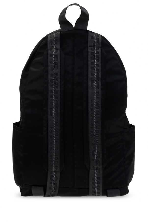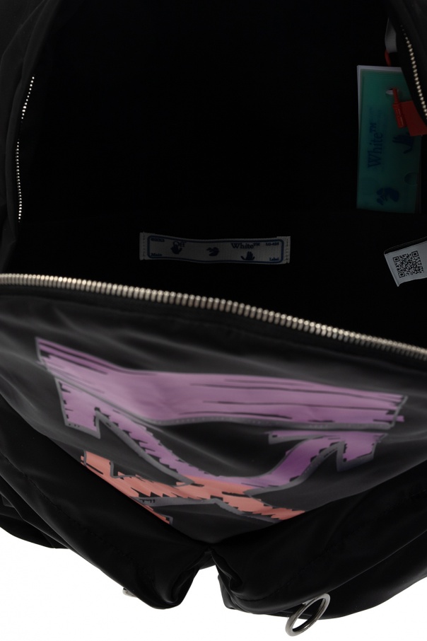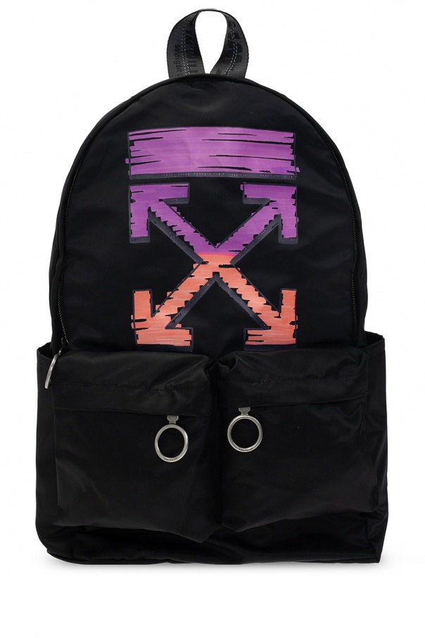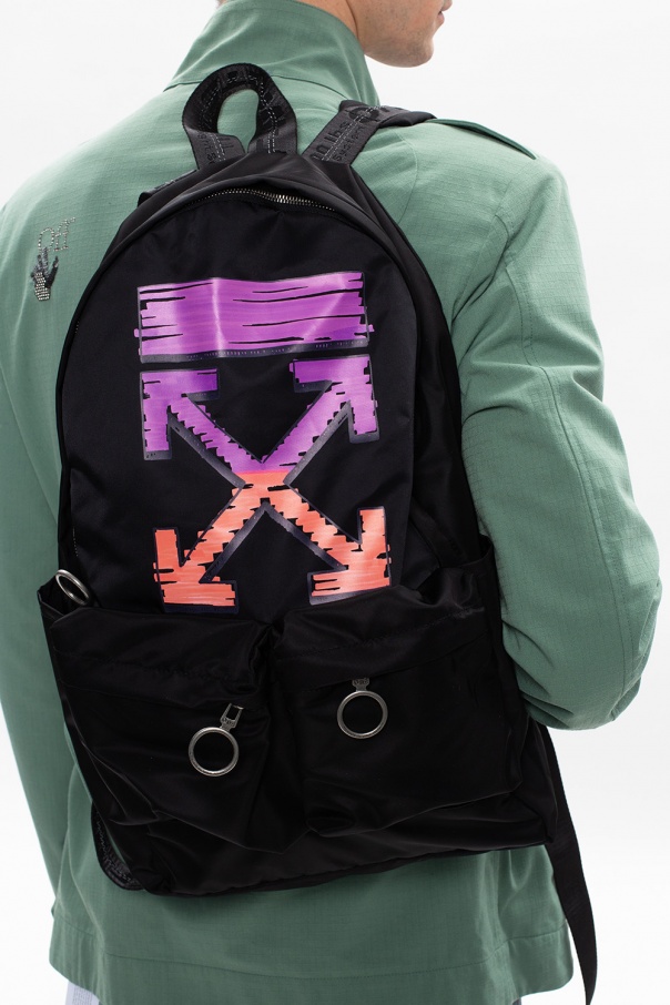 Black backpack from Off-White. Fastened with a zip, this item features a logo embroidery, purple and orange logo print, two front zip pockets, two side slip pockets, half-round handle, adjustable shoulder strap and one internal compartment with one slip pocket.