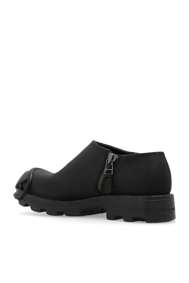 Black ‘D-HAMMER’ sneakers from Diesel. Made from cow leather, this model sits on a black rubber sole and features a rubber logo application on the front and a side zipper.