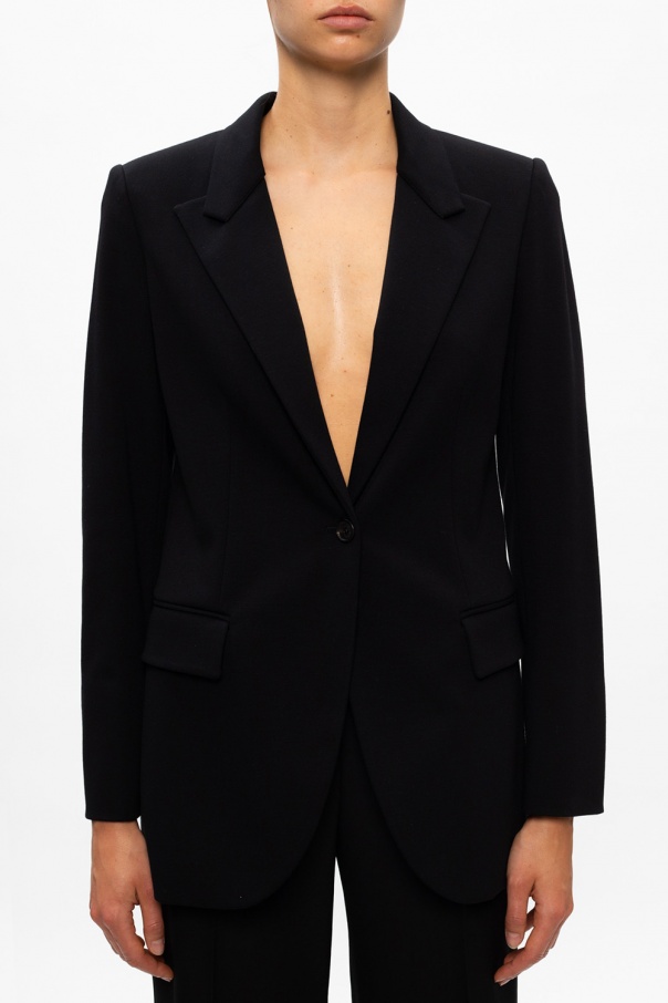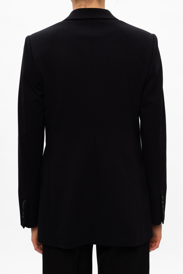 Black blazer from Salvatore Ferragamo. This design features button fastening, two front flap pockets and long sleeves.