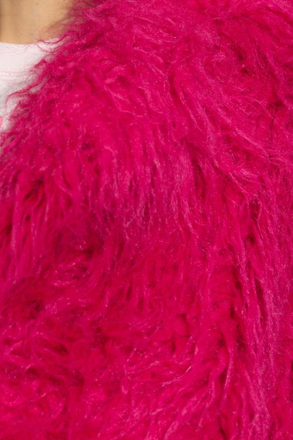 Pink ‘Janet’ jacket from Stand Studio. Crafted from faux fur, this garment is complete with hook fastenings and two slip pockets.